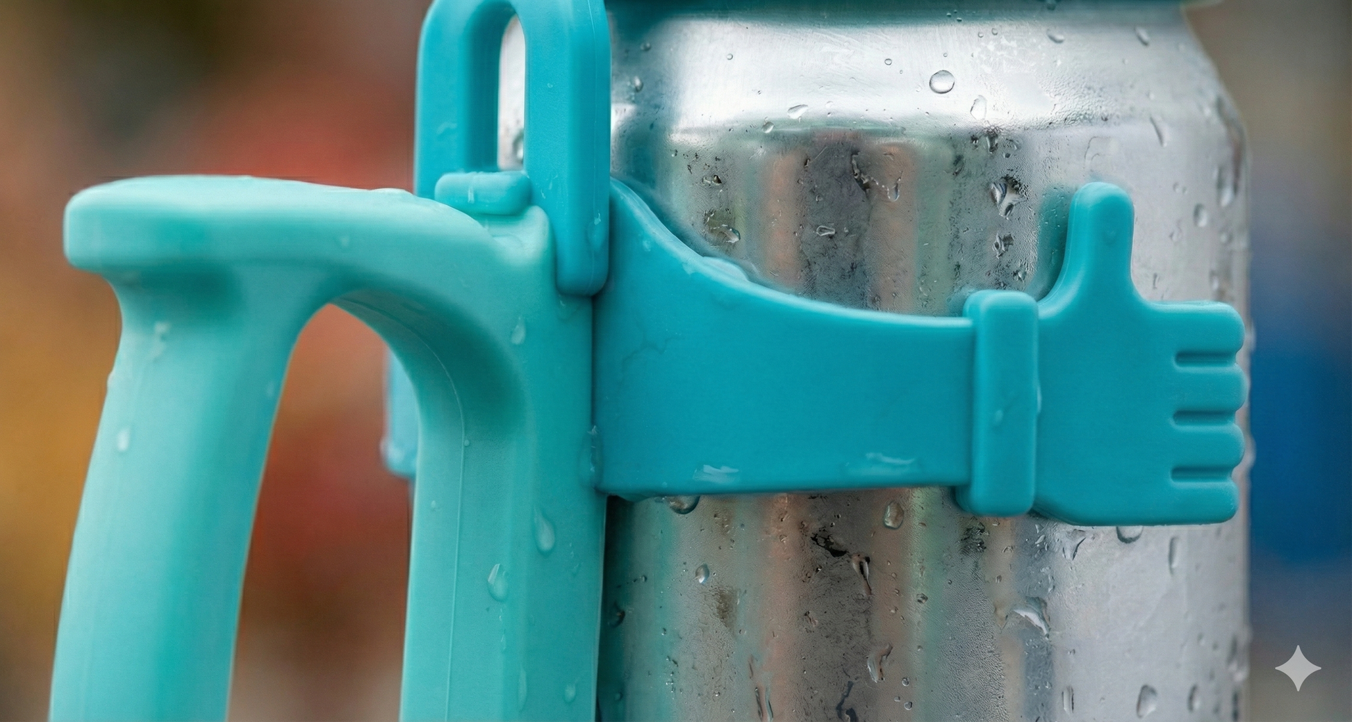 👐 Presa Hug-Grip™ Imbattibile Il design a "braccia" avvolge la lattina garantendo una stabilità che un manico normale non ha. È come una cintura di sicurezza per la tua bibita.
